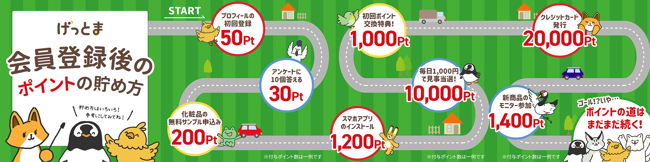 - プロフィールの初回登録:50pt