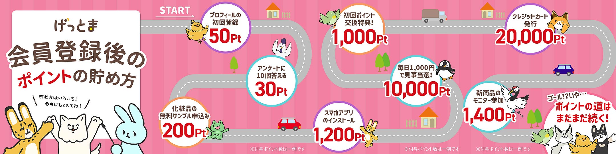 - プロフィールの初回登録:50pt