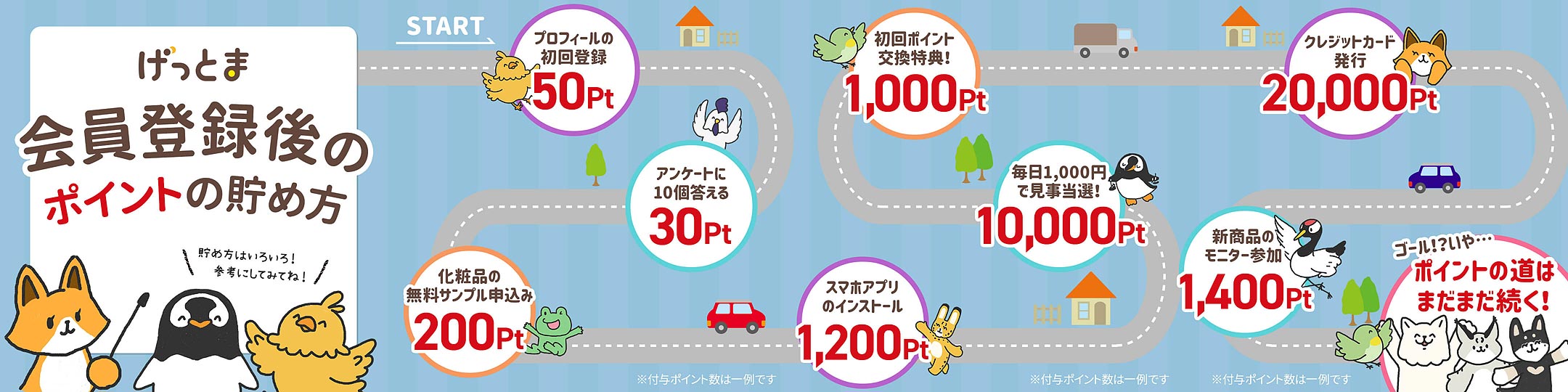 - プロフィールの初回登録:50pt