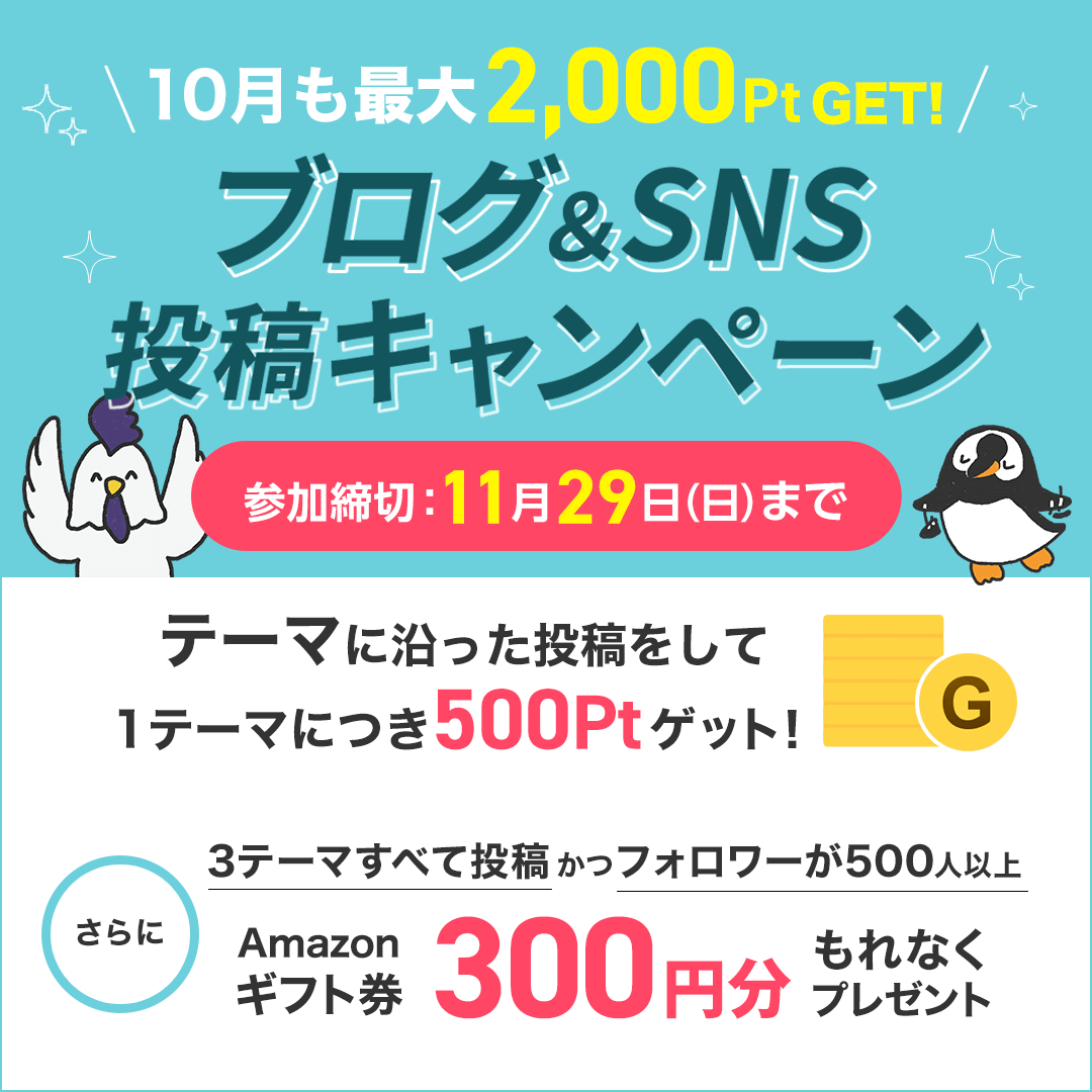 ポイントサイト『GetMoney』では、第16弾となる「ブログ&SNS投稿キャンペーン」11月版を実施中です。