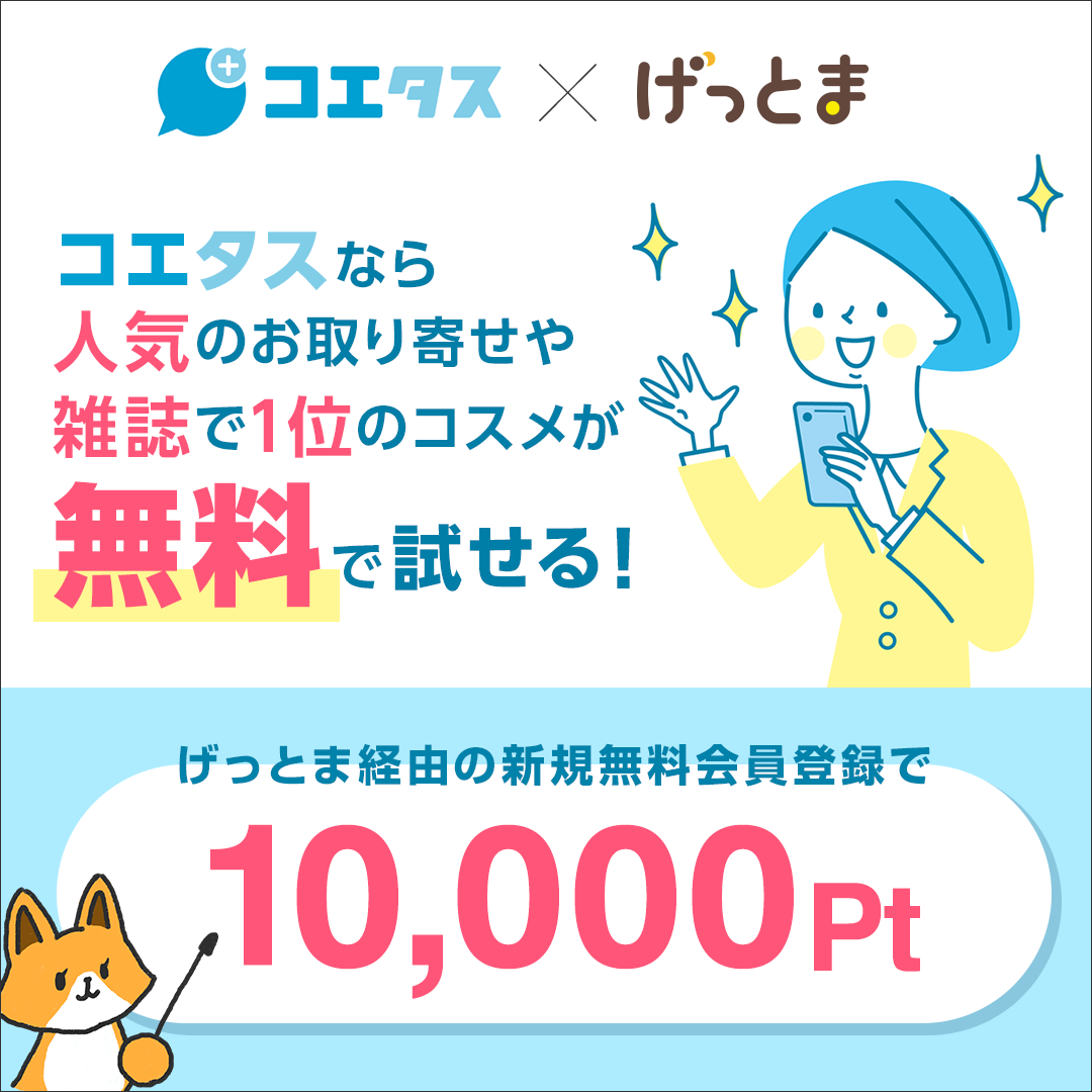 ポイントサイト『Getoney!(げっとま)』「コエタス」の新規無料会員登録が10,000ptにアップ