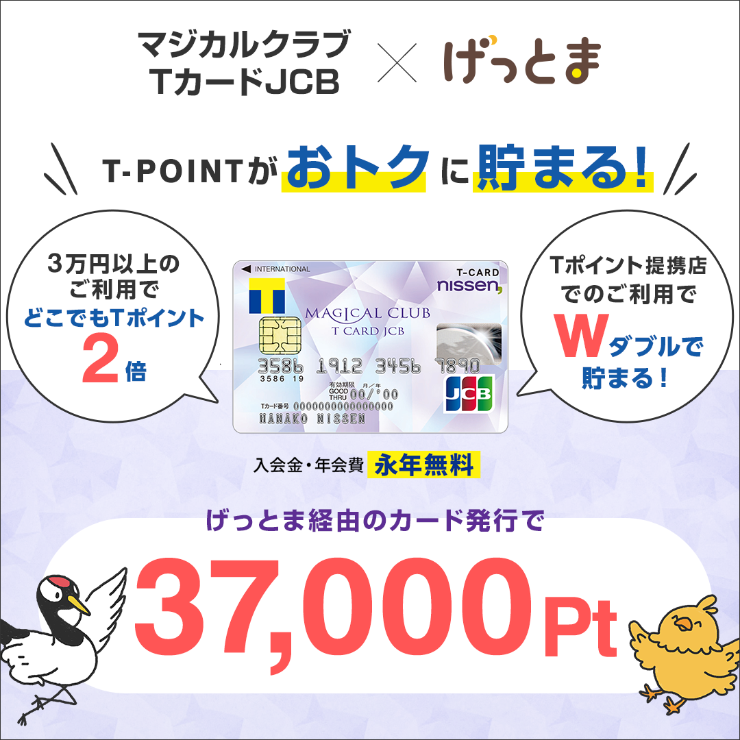 ポイントサイト『Getoney!(げっとま)』で「マジカルクラブTカードJCB」の申し込みが37,000Ptにアップ