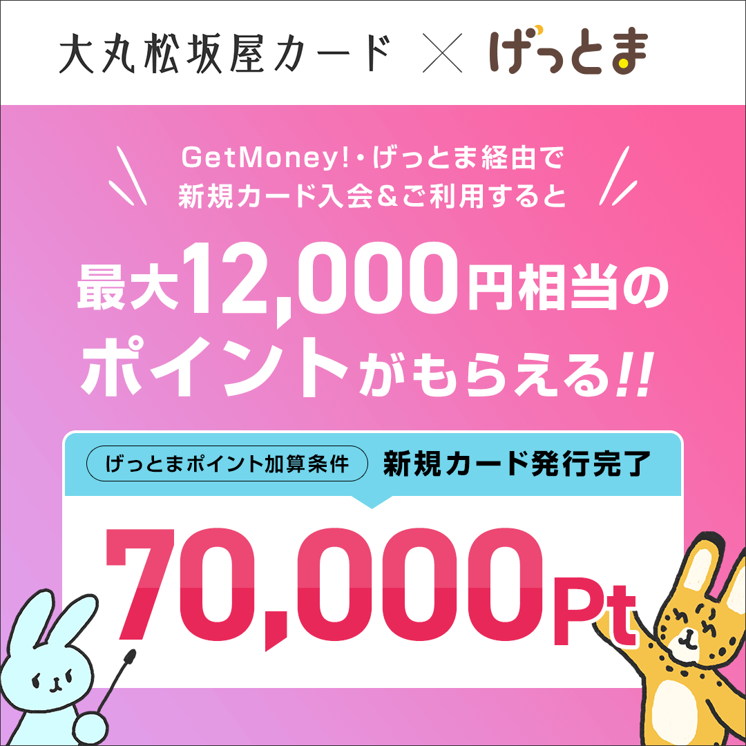 ポイントサイト『Getoney!(げっとま)』で、「JFRード(大丸松坂屋カード)」の新規カード発行完了が 通常300Pt → が70,000Ptにアップしています。