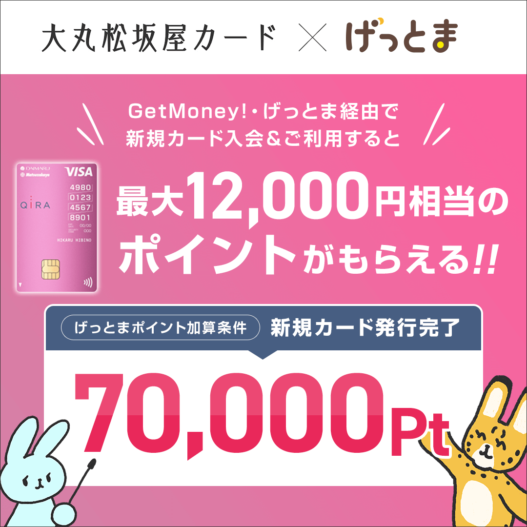 ポイントサイト『Getoney!(げっとま)』で、「JFRード(大丸松坂屋カード)」新規カード発行完了が70,000Ptにアップ