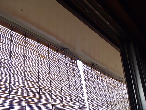南側の窓のすだれの内側は日陰になり、すだれをかけた瞬間から窓際が涼しくなるのが分かります。