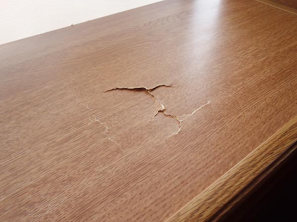 本棚の天板の割れを100円ショップのフローリングマットで補修した