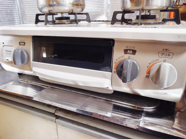 特別な機能は不要で2口+グリルがあればいいので、店舗やネットで一番安いものを探した結果、『リンナイ(Rinnai) KGM33NBEL-LP シャンパンメタリック(プロパン用・左強火力・2口)』を買った。