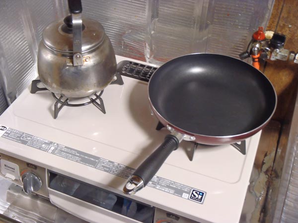 ヤカンと26cmのフライパンを置いてみたが、狭くなった感じは受けなかった。