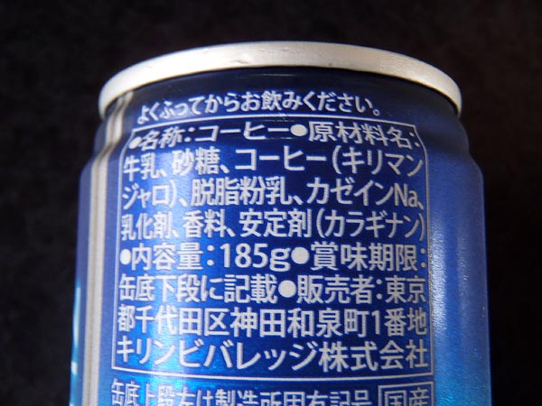 缶には、『アイスクリア製法』、『甘さとミルクの味わいを控えめ』と書いてあり、なるほどそのとおりの口当たりだと思いました。