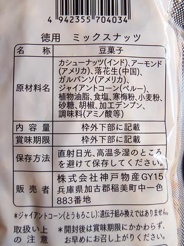 先日楽天で購入したミックスナッツを食べ終えてしまったので、今度は、業務スーパーのミックスナッツを買ってみた。
