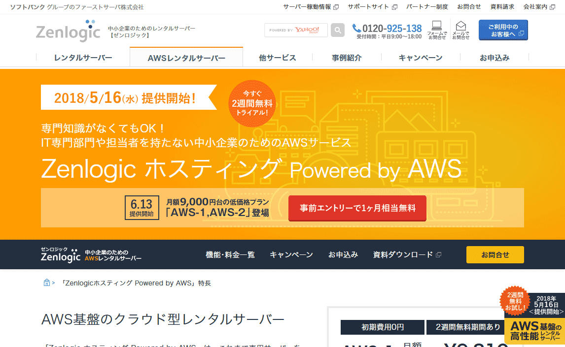 「Zenlogic ホスティング Powered by AWS」は、 ソフトバンクグループのファーストサーバ株式会社が提供するレンタルサーバーで、 世界的に実績豊富なクラウドサービス「アマゾン ウェブ サービス(AWS)」を レンタルサーバー感覚で利用できるサービスです。【2週間無料トライアル付き】なので、サービスを吟味した後で契約できます。